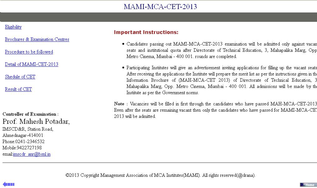 Submitting the prescribed application form online for the year 2015-2016. The Competent Authority, the Director of Technical Education, Maharashtra State, shall be the authority for Centralised Admission Process and direct the students as per their allotment ... Document Retrieval